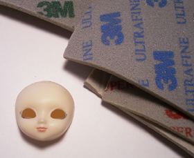 ここまでの一連の作業の中で 肌に傷が付いてしまったら スポンジペーパーで磨きます。 今回は額にキズを付けてしまったので 額のみスポンジペーパーで整えました。 メイクも取れて、一石二鳥?? |