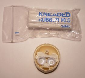 今回ドールアイ(自作)をねり消しで固定してますが 本来は瞳固定パテなどで固定される事をお薦めします。 ねり消しは、次アイを外す時、アイにねり消しカスが 残ってしまうのです… でもパテはちょっと固いので苦手です(--ι 付け方にも特にこだわりはありません。 これもまた固定されてれば何でもいい、って感じでιι アイが付けられたら解体していたパーツを 全て元に戻します。 |